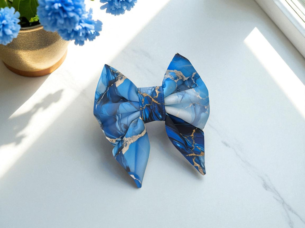 Modrá mašle pro psa z kolekce Marble Ocean.