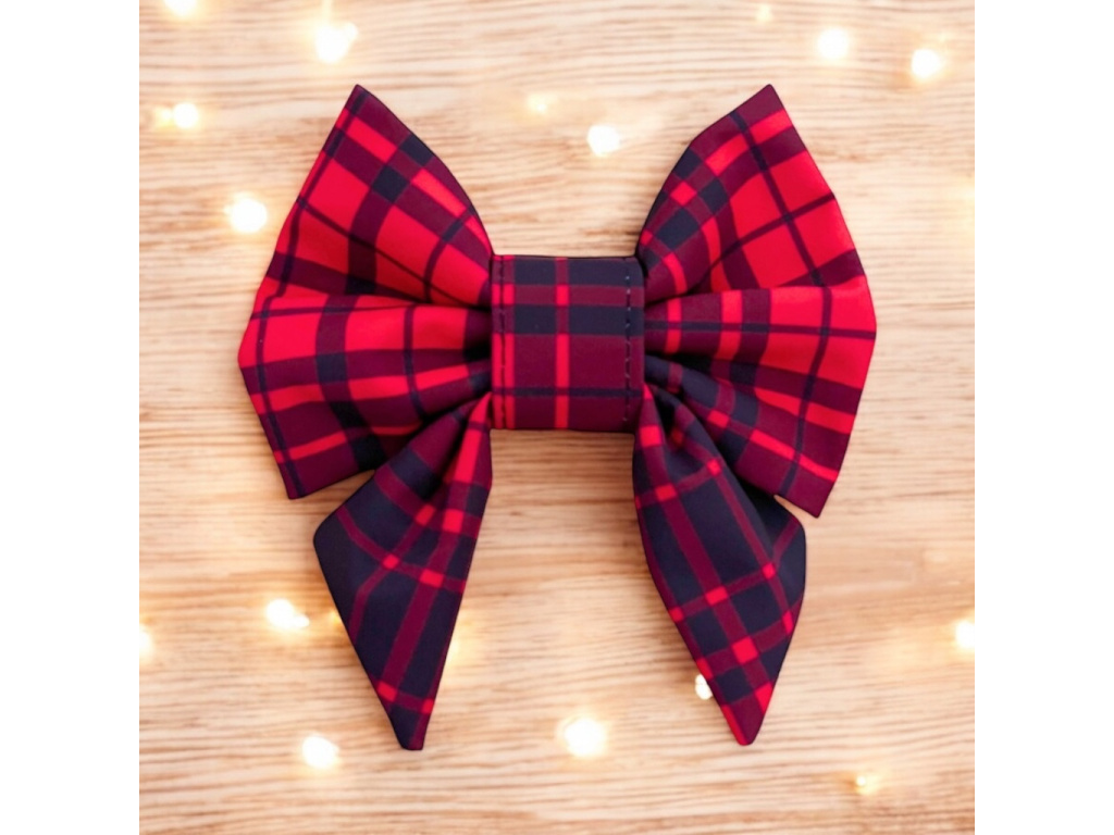 Mašle pro psy s károvým vzorem v červeno-černé barvě.