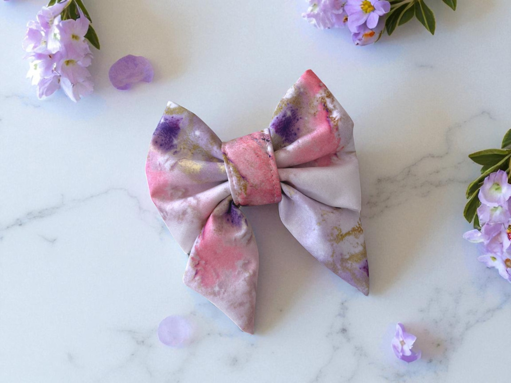 Růžovo-fialová mašle pro psa se zlatými detaily z kolekce Stardust.