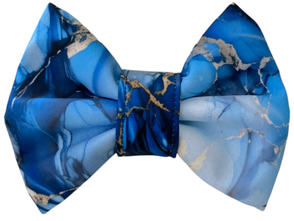 Modrý motýlek pro psa z kolekce Marble Ocean. Motýlek je ve velikosti M.