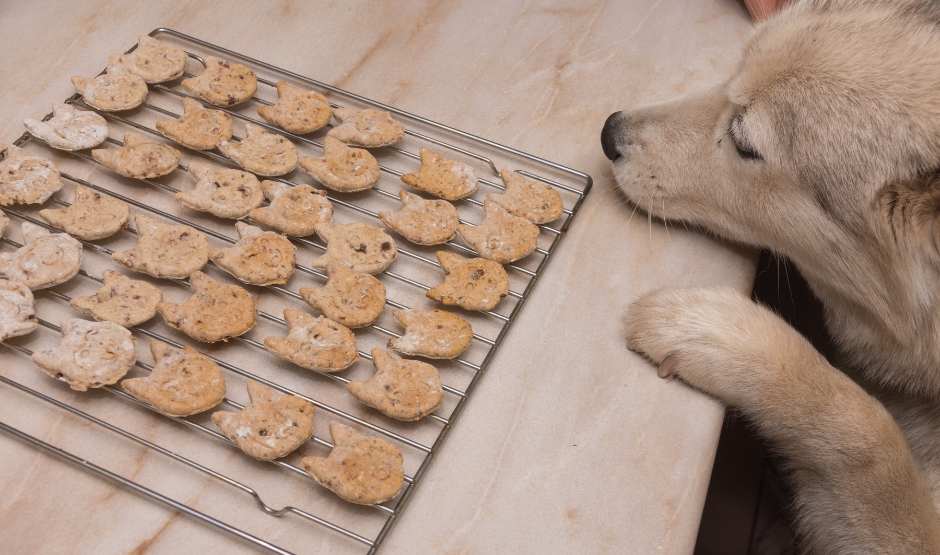 - Pečte na 170 °C přibližně 20 minut, dokud nejsou pamlsky pevné a lehce zlatavé.