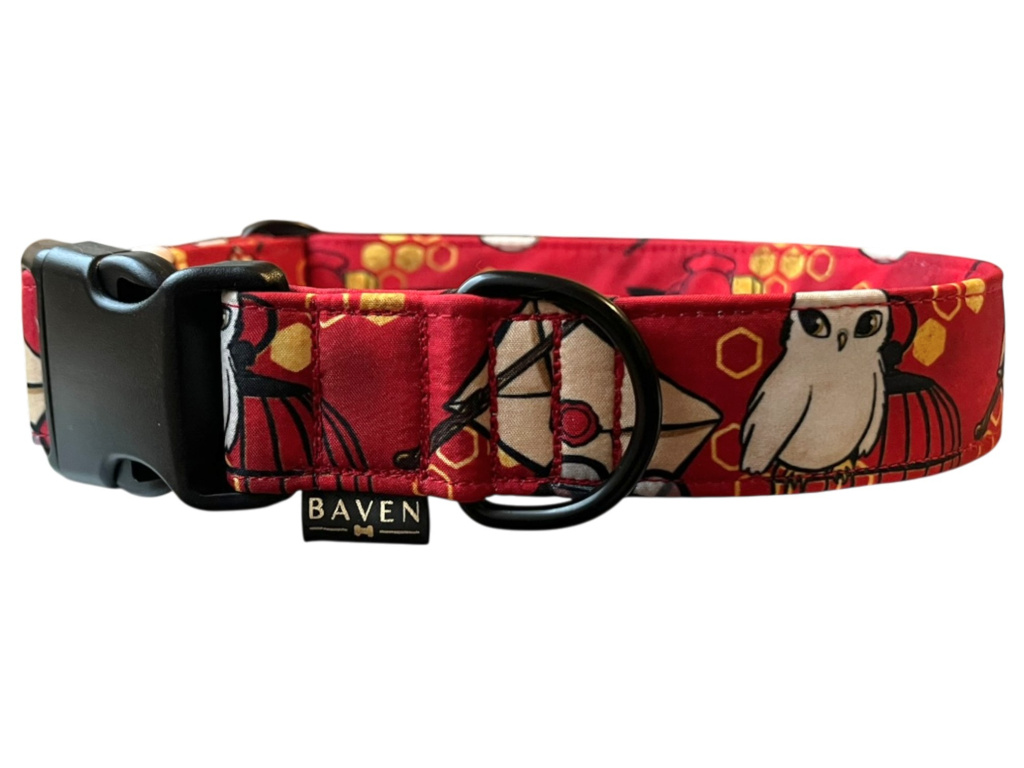 Tip: Obojek Hogwarts Red vypadá skvěle s černým kováním! Vzor je také poměrně velký, hodí se tedy pouze na obojky široké alespoň 2,5 cm.
