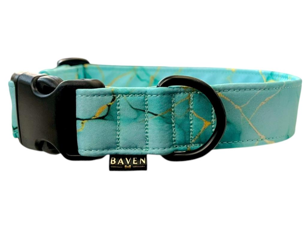 Tyrkysový obojek se zlatými detaily pro psa z kolekce Marble Turquoise.