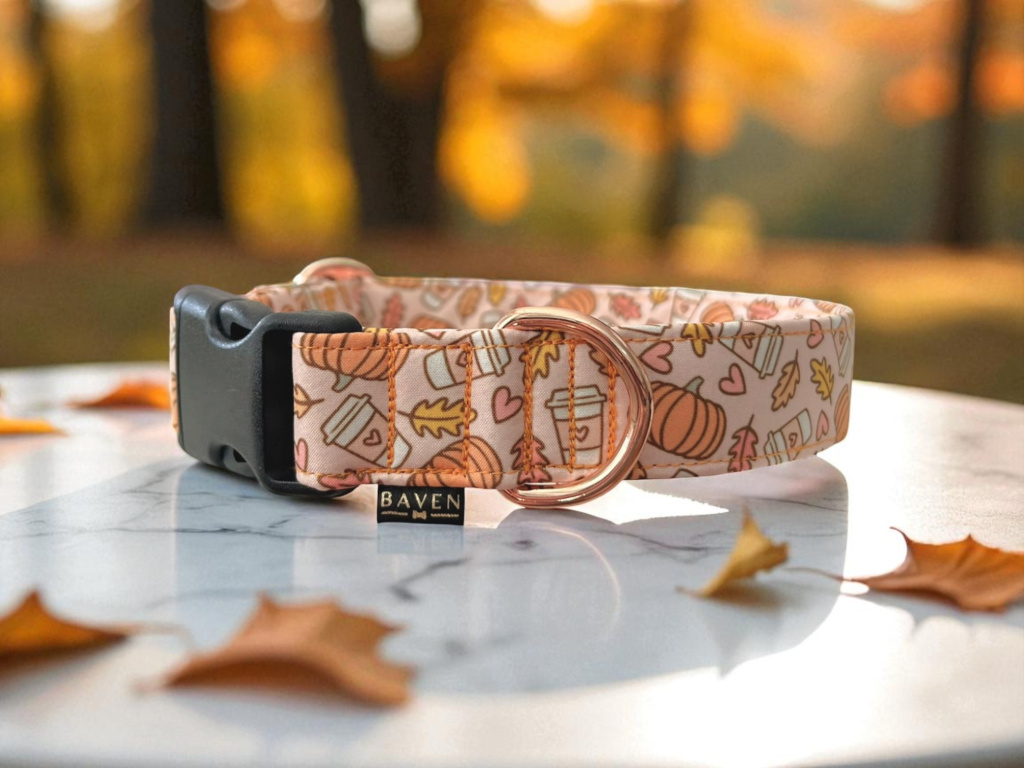 Obojek pro psa Pumpkin Spice Latte dodá vašemu chlupáčovi styl na každé procházce. Ideální pro všechny, kteří milují spadané listí, dýně a kouzlo podzimních dnů.🍂🎃