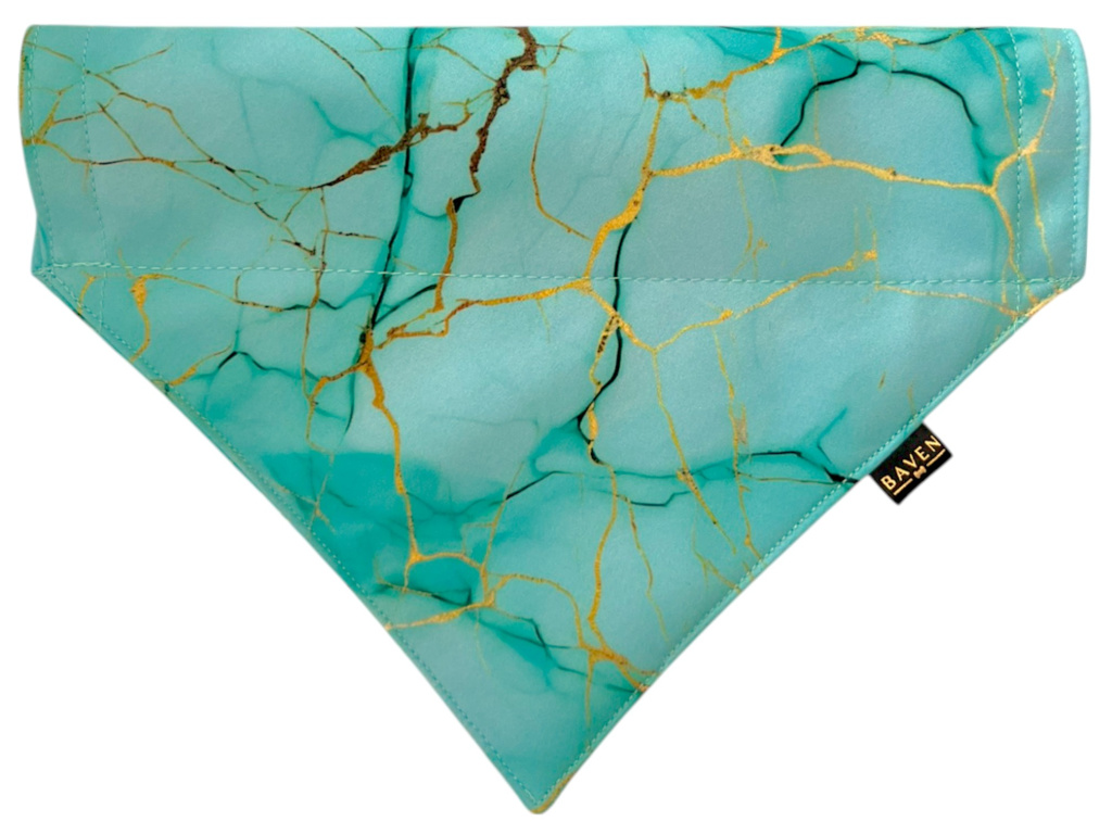 Šátek pro psa v tyrkysové barvě se zlatými detaily z kolekce Marble Turquoise.