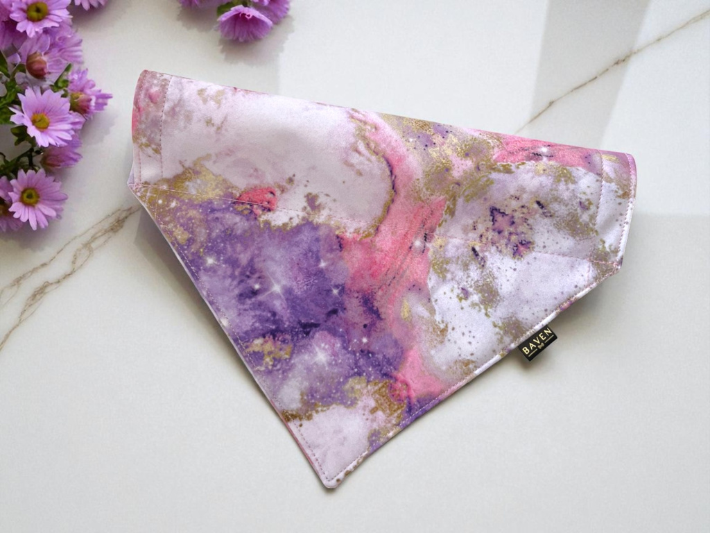 Růžovo-fialový šátek pro psa se zlatými detaily z kolekce Stardust.