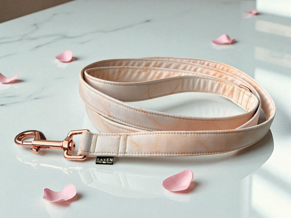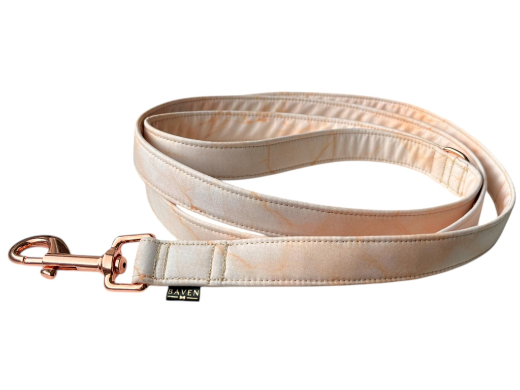 Vodítko pro psa ve světle béžové barvě z kolekce Marble Champagne, v délce 165 cm, šířce 2 cm a s kováním v barvě růžového zlata.