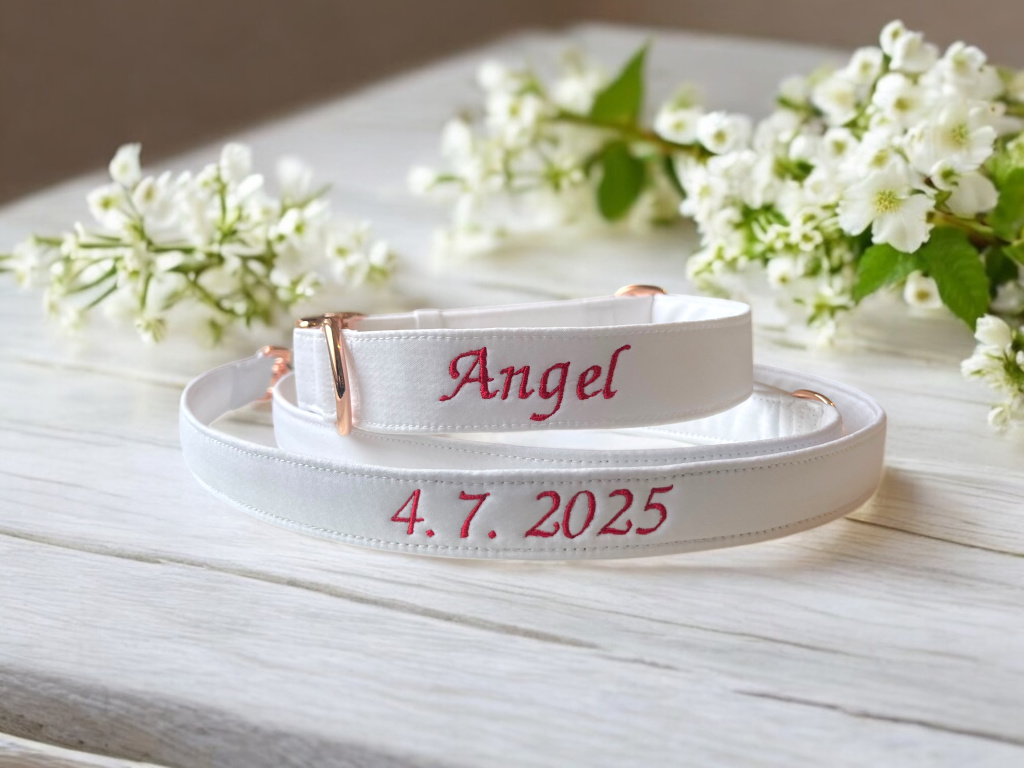 Čistě bílé vodítko pro psa, ideální pro Váš velký svatební den!