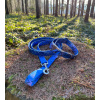 - pokud je pes zrovna na volno, můžete si druhý konec vodítka připnout k polokroužku a nosit vodítko pohodlně přehozené přes rameno.